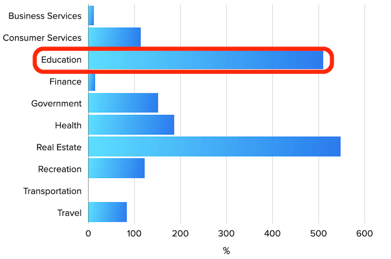 More than a 500% increase in the number of live chats in a year in the Education sector.